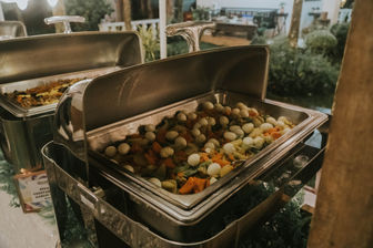 •Basic Design Set-up for the Venue •Presidential (VIP) table with sophisticated set-up •Round tables with cloth and centerpiece for the guests •White-colored Tiffany chairs with cushions, elegant •Centerpiece for guest tables (fresh flowers per table—add Php 250++) •Buffet table with centerpiece and lighting •Roll-top chafing dish with fuel can holder •Drinks and water station table •Sets of complete utensils •Registration, cake table, gift, and giveaway tables •Comfortable couch for the couple/s •Well-trained waiters and food and beverage attendants in uniform ** Design or theme will be coordinated with our in-house catering.